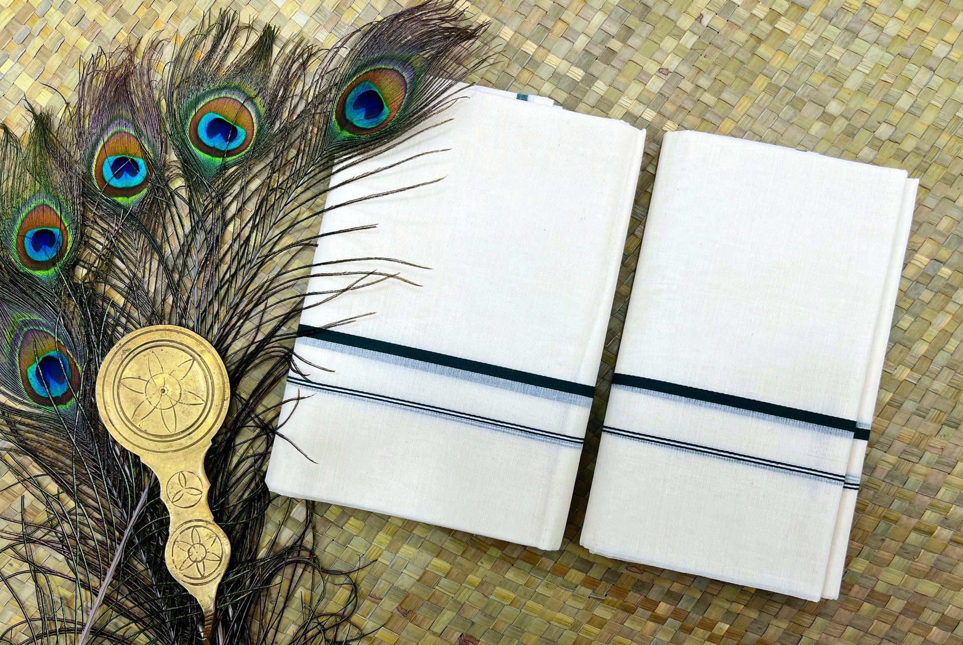 Pulyilakkara Set Mundu is a classic piece that captures the elegance of Kerala’s festive season. The rich green color and intricate details add to its festive charm.