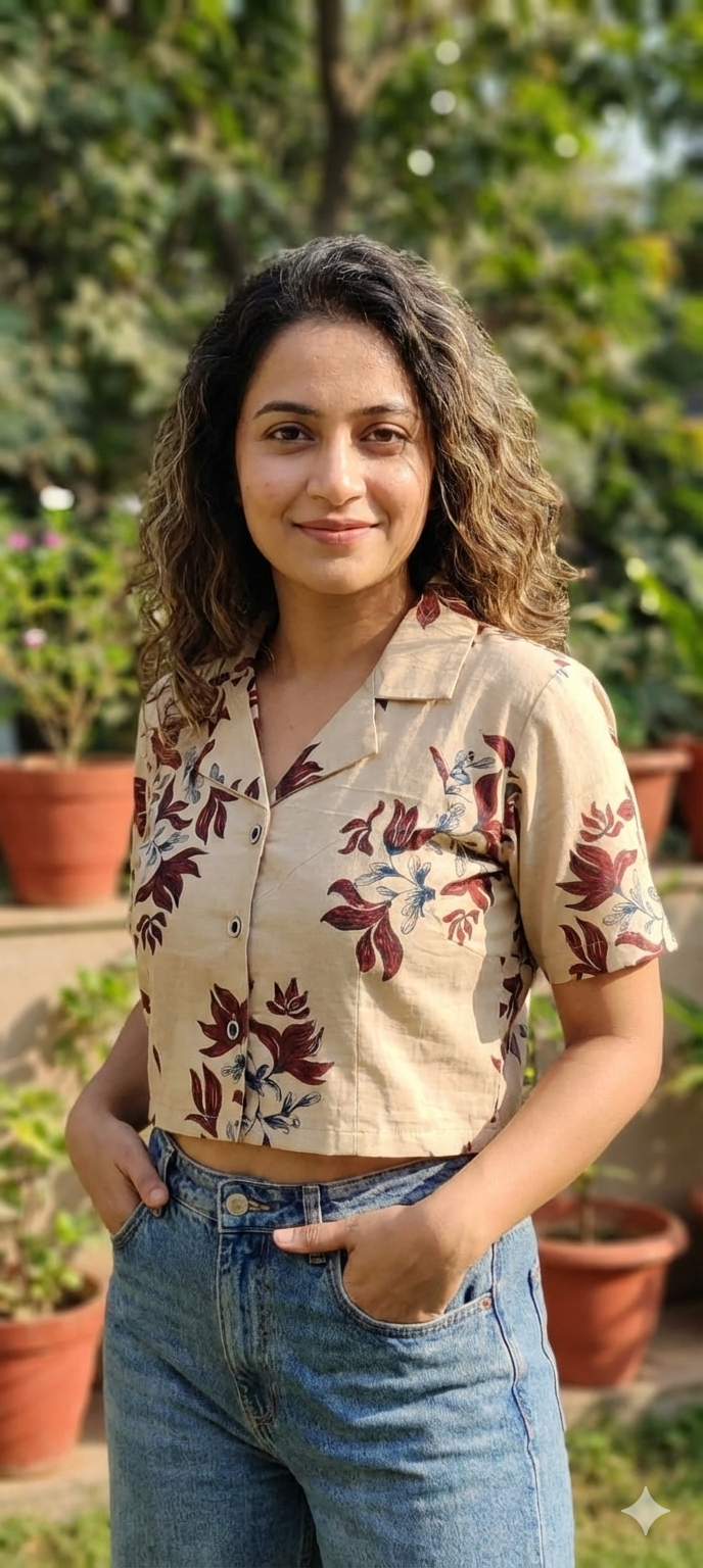 Discover understated sophistication with this cream botanical printed Cuban collar shirt. Designed as a cropped silhouette in soft, breathable cotton, this relaxed-fit piece brings effortless charm to your collection. The intricate botanical print adds visual interest while the structured Cuban collar elevates any outfit instantly. Whether you're dressing up for brunch or keeping it casual on the weekend, this versatile top adapts to your style. Experience the perfect balance of comfort and elegance with a garment that works as hard as you do.