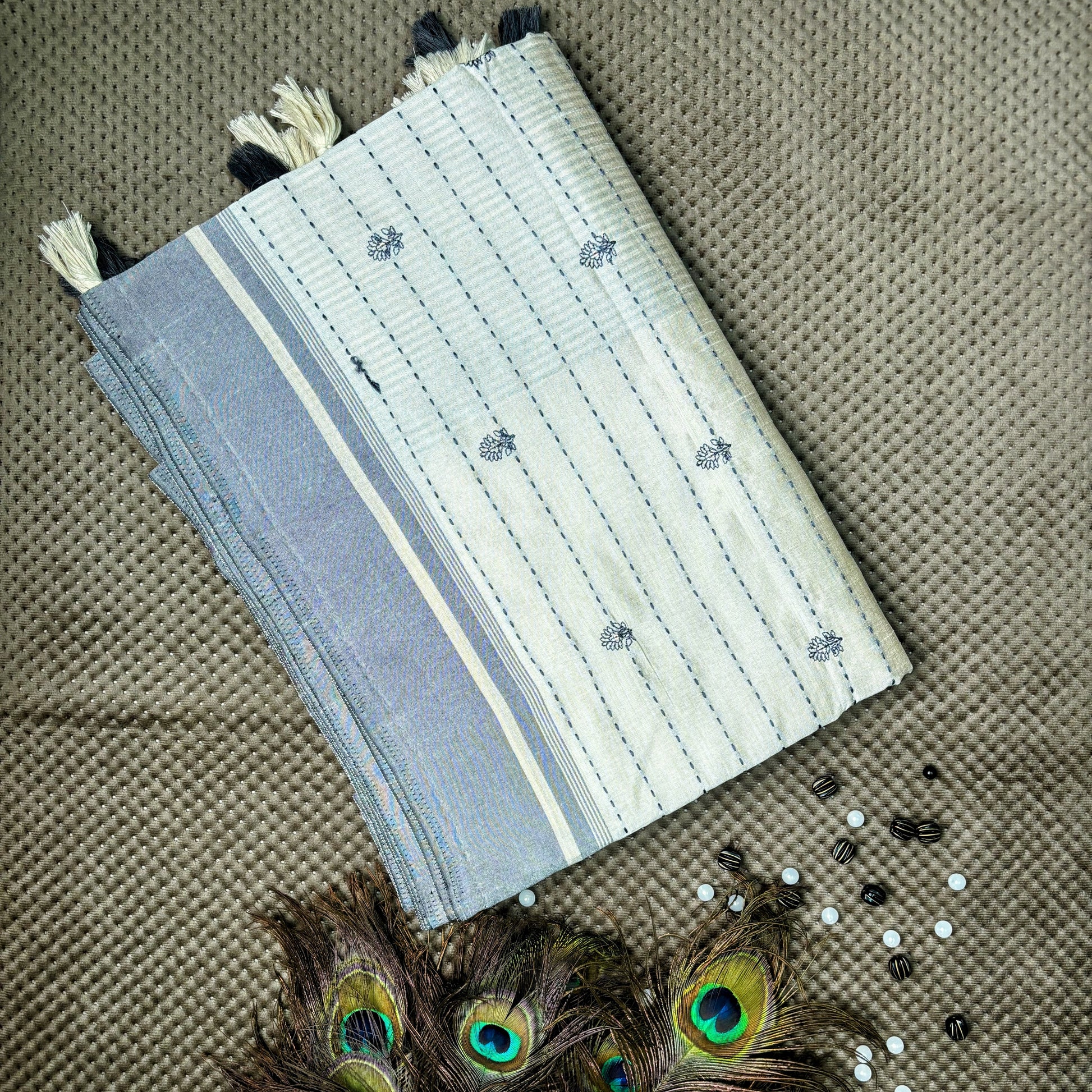 Experience timeless elegance with this Linen Cotton Saree in soothing off-white and grey tones. Crafted from breathable linen cotton, it offers exceptional comfort and a graceful drape perfect for any occasion. Its subtle color palette enhances your natural charm while ensuring you stay cool and stylish throughout the day. Elevate your wardrobe with this versatile saree that blends tradition with modern ease effortlessly.