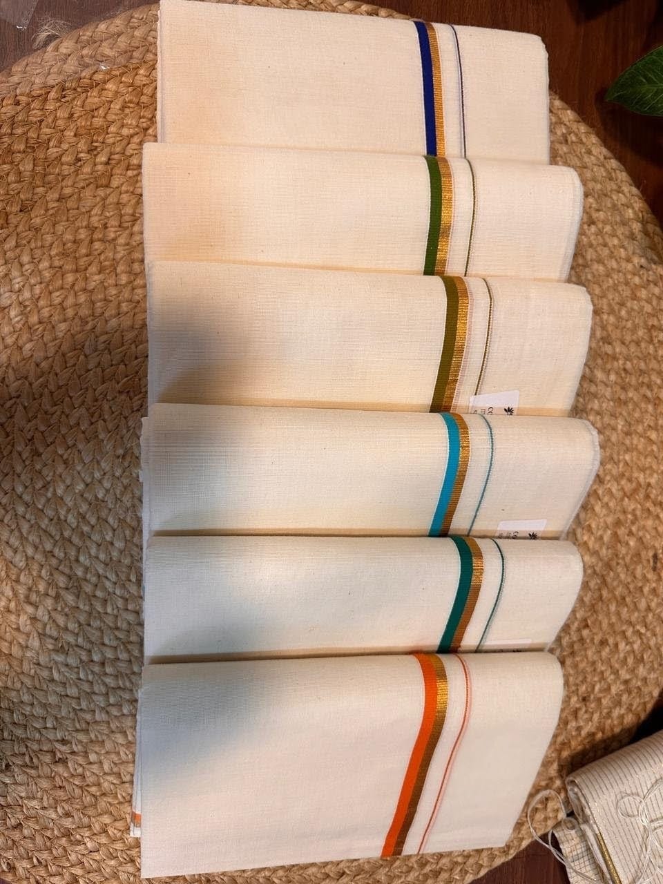 Pulyilakkara Kasavu Set Mundu is a classic piece that captures the elegance of Kerala’s festive season. The rich green color and intricate details add to its festive charm.