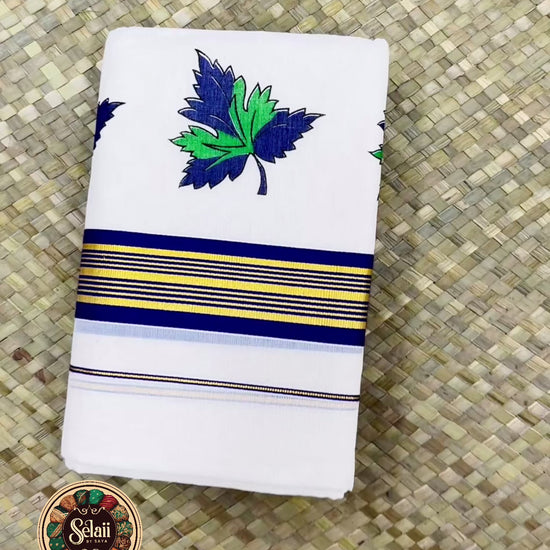 Add a touch of nature to your Onam celebrations with the Purple & Green Grape Leaf Printed Set Mundu. The vibrant purple and green hues, paired with the graceful grape leaf print, embody the season’s abundance and beauty.